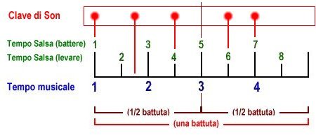 La posizione dei colpi della Clave di Son è la seguente: 1-2½-4-6-7